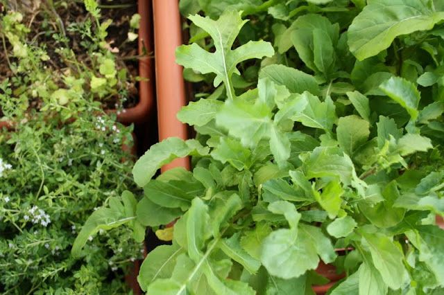 Hortas caseiras? Está no título? Pois está! É que a rúcula saiu da varanda directamente para a cozinha. Plantei-a numa floreira, ainda em semente. E, diz quem mais a aprecia, é deliciosa!
