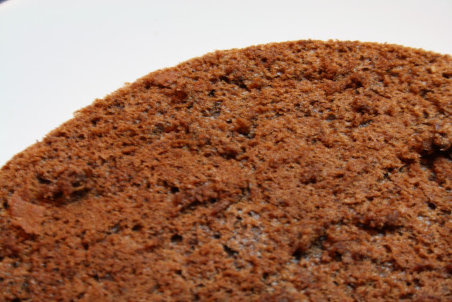 1) Faço a base de bolo de chocolate. Uma mousse de seis ovos com os restantes ingredientes nas proporções indicadas e com chocolate preto. Juntei duas colheres de sopa de farinha e uma de fermento. Como só tenho uma forma redonda, dividi a massa e levei-a ao forno em duas vezes, de modo a ficar com dois bolos baixos (como leva pouca farinha, a solução de fazer um só bolo e cortá-lo ao meio não é lá grande coisa... been there, done crap, perdão, that... por isso, mais vale demorar um pouco mais...)
